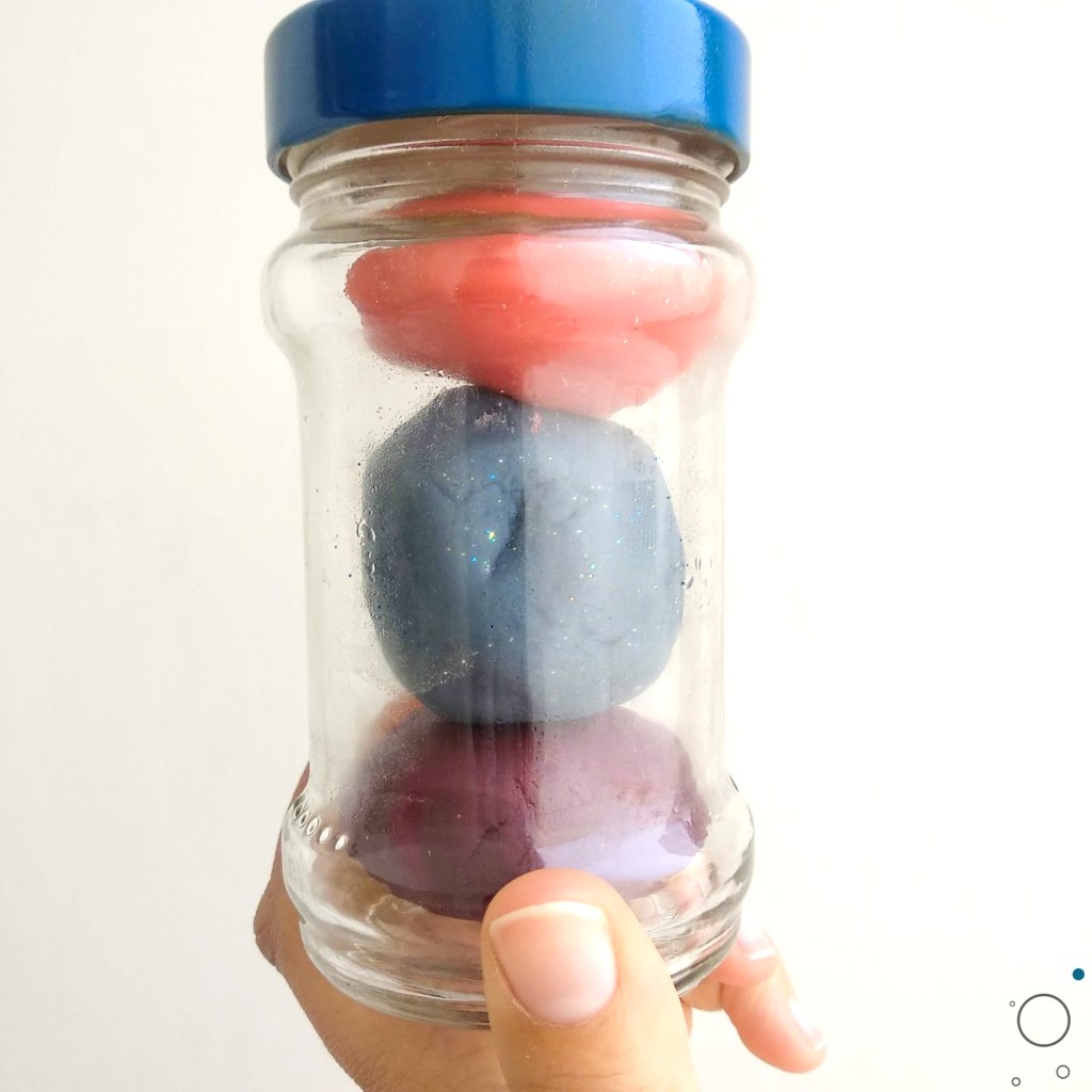 A jar with 150g of handmade, long-lasting playdough (3 colours)