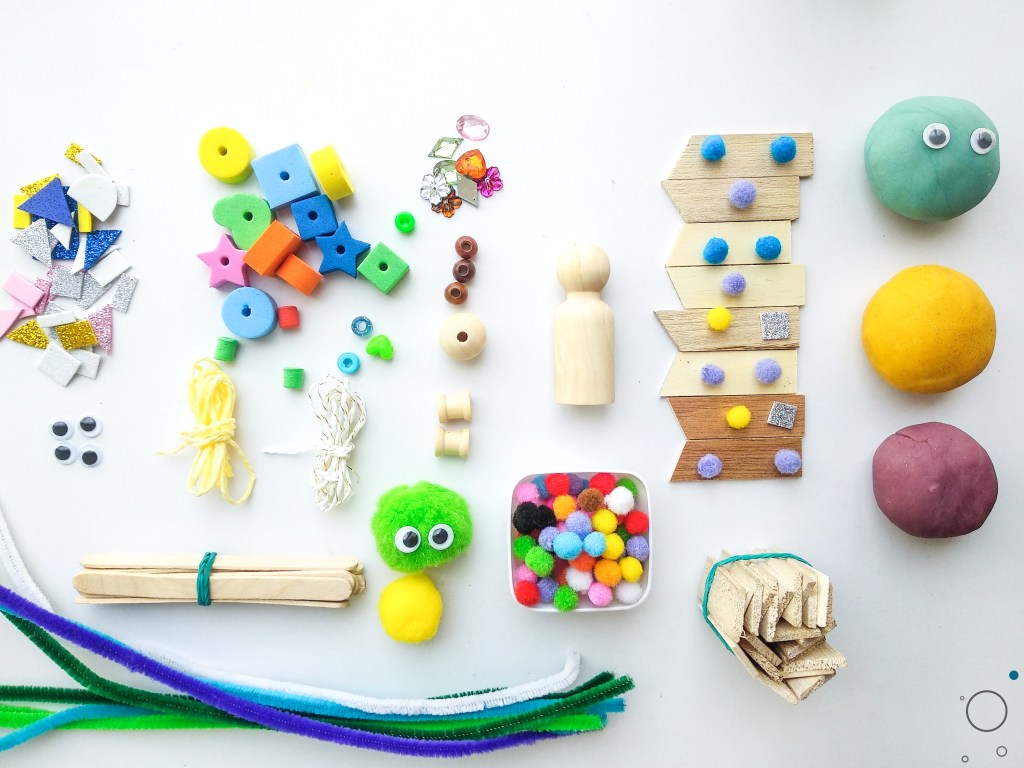 This Creative Play Kit is a thoughtful selection of materials which allow for purposeful, independent play. Colour sorting, construction, threading and exploring shape & texture are skills which lead to improving fine motor, cognitive and creative skills. From paper string and pipe cleaners to an assortment of beads from different materials & textures. Natural wooden materials can be used to build, create patterns, paint and play; and our long-lasting handmade playdough is an extra bit of fun in imaginative explorations.